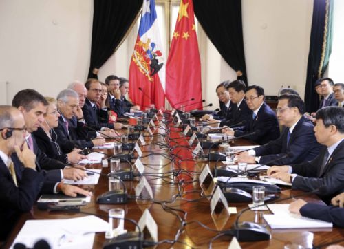 5. 在中國國務院總理李克強與智利總統巴切萊特的見證下,中國商務部部長高虎城與智利外交部部長穆尼奧斯在智利首都圣地亞哥共同簽署《中華人民共和國商務部和智利共和國外交部關于中國—智利自由貿易協定升級的諒解備忘...